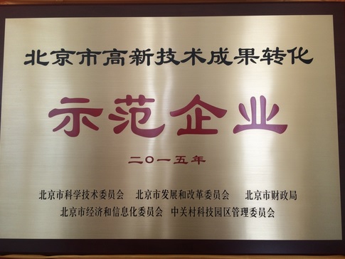 根據北京市科委、市發展改革委、市財政局、市經濟信息化委、中關村管委會《關于組織開展2015年度北京市高新技術成果轉化項目認定工作的通知》,我公司申報《北京市高新技術成果轉化項目》以驕人的成績,榮獲2015年北京市高新技術成果轉化示范企業,并于2015年5月獲得成果補貼100萬元整。
